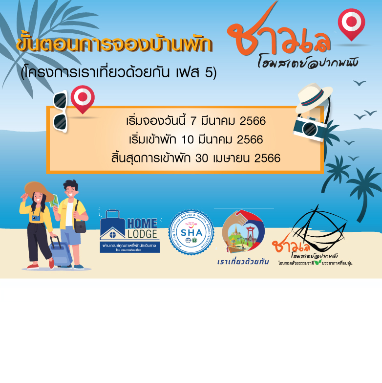 ชาวเลโฮมสเตย์ @ปากพนัง เข้าร่วมโครงการเราเที่ยวด้วยกัน เฟส 5 เริ่มจองวันนี้ 7 มีนาคม 2566 เริ่มเข้าพัก 10 มีนาคม 2566 สิ้นสุดการเข้าพัก 30 เมษายน 2566 บ้านพัก พร้อมอาหารเช้า – เตียงเดี่ยว เริ่ม 900.- บาท / คืน (ลูกค้าชำระ 540.- บาท) – เตียงคู่ เริ่ม 1,200.- บาท / คืน (ลูกค้าชำระ 720.- บาท) สัมผัสธรรมชาติ บรรยากาศที่อบอุ่น ในวันพักผ่อนสบาย ๆ ที่ทำให้คุณลืมความวุ่นวายในเมืองใหญ่ บ้านพักที่ได้รับมาตรฐาน SHA (มาตรฐานความปลอดภัย ด้านสุขอนามัย) แพร้อมให้บริการจุดคัดกรองตรวจเช็คอุณหภูมิ มีแอลกอฮอล์ไว้บริการตามจุดต่าง ๆ รวมถึงพนักงานตรวจโควิด […]